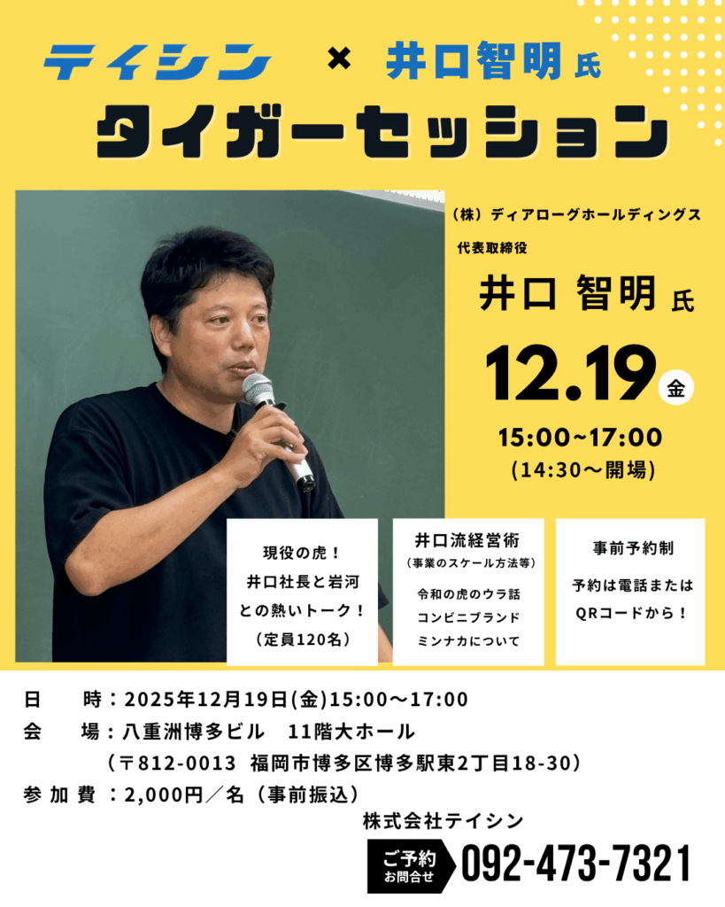 今年12月には、人気YouTube番組「令和の虎」に出演されている(株)ディアローグホールディングス井口智明社長をお招きし、