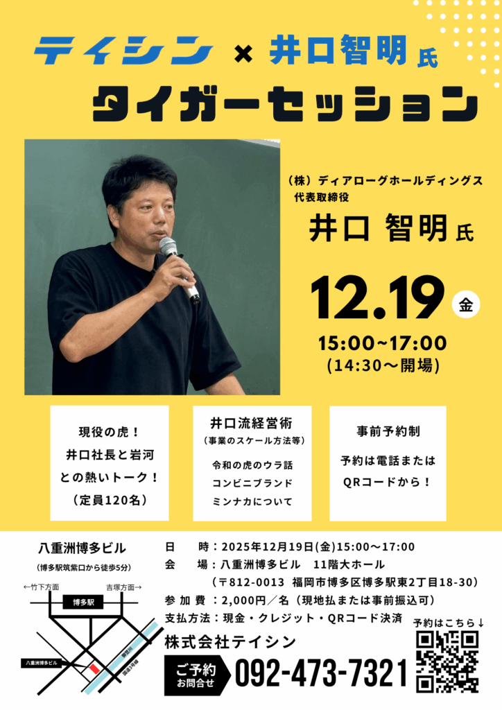 今年12月には、人気YouTube番組「令和の虎」に出演されている(株)ディアローグホールディングス井口智明社長をお招きし、